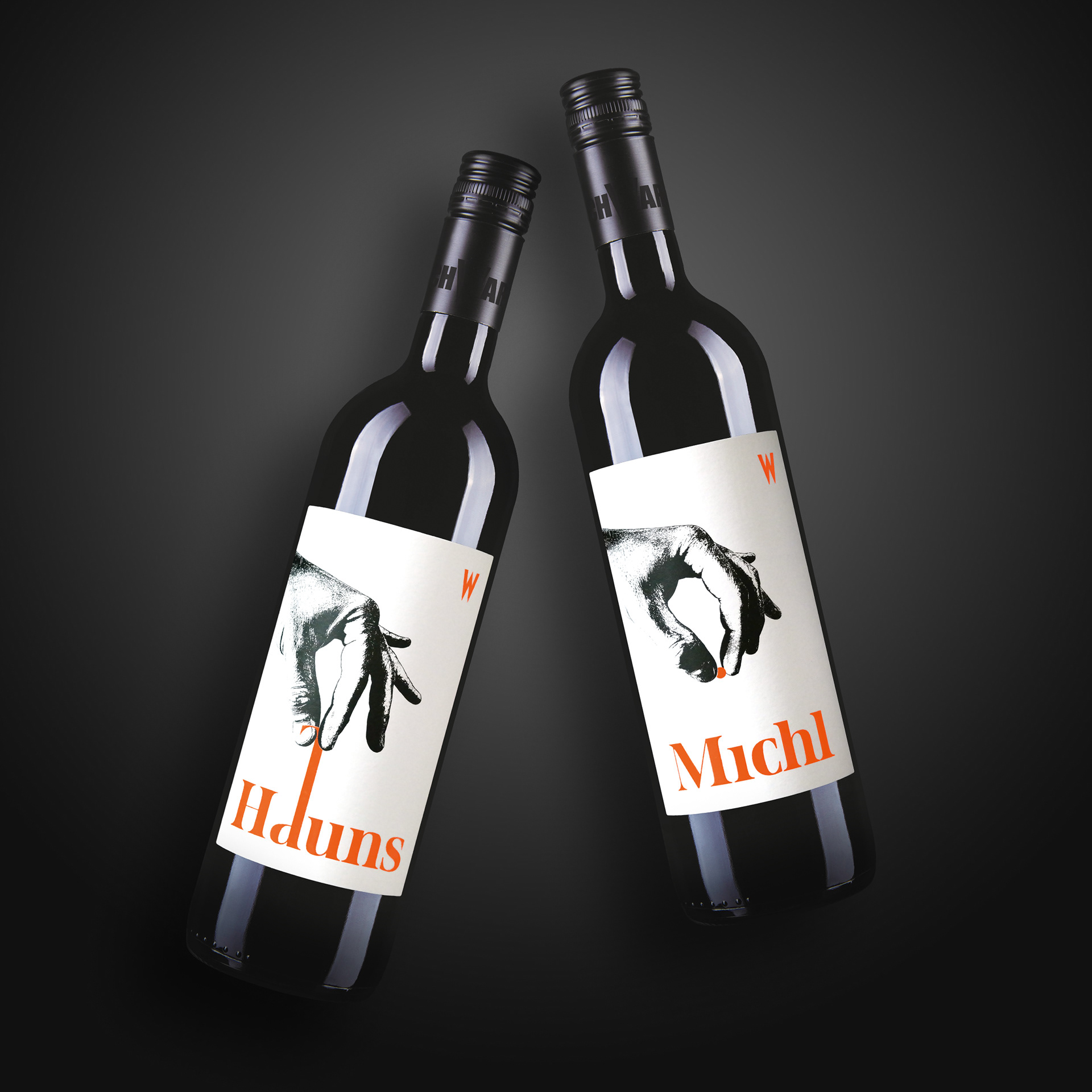 Neugestaltung und Illustration der Weinetiketten für die beiden Weine „Hauns“ und „Michl“ für das Weingut Schwarz, Andau.